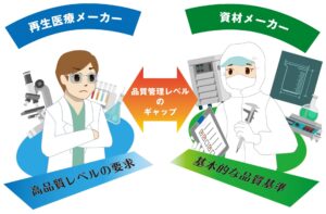 しかしここで、再生医療等製品メーカーと資材メーカーとの間に品質管理レベルのギャップが生じやすくなります。